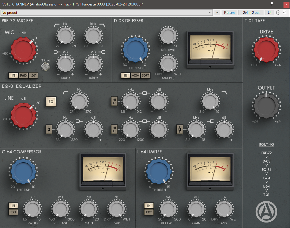 Muito conhecida no mundo dos plugins gratuitos, a Analog Obsession oferece a versão atualizada do querido channel strip Channev, que é baseado num console Neve. O plugin oferece pré-amp, de-esser, compressor, equalizador e outras funções, tudo com aquele gostinho "Neve".